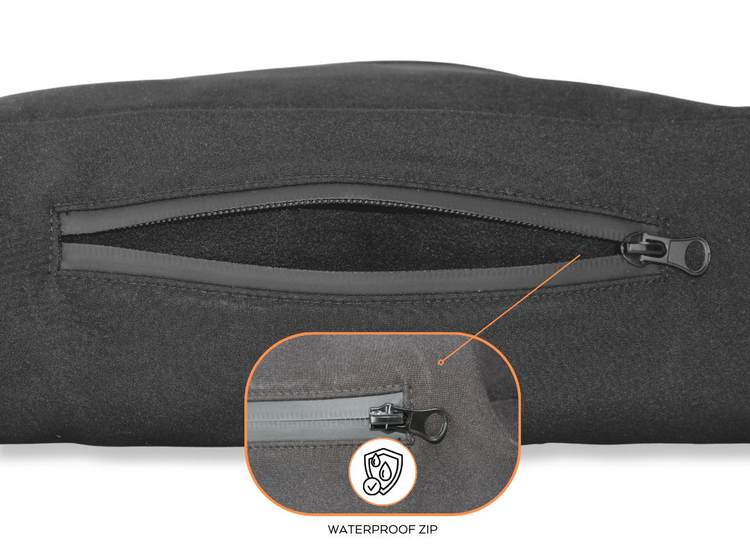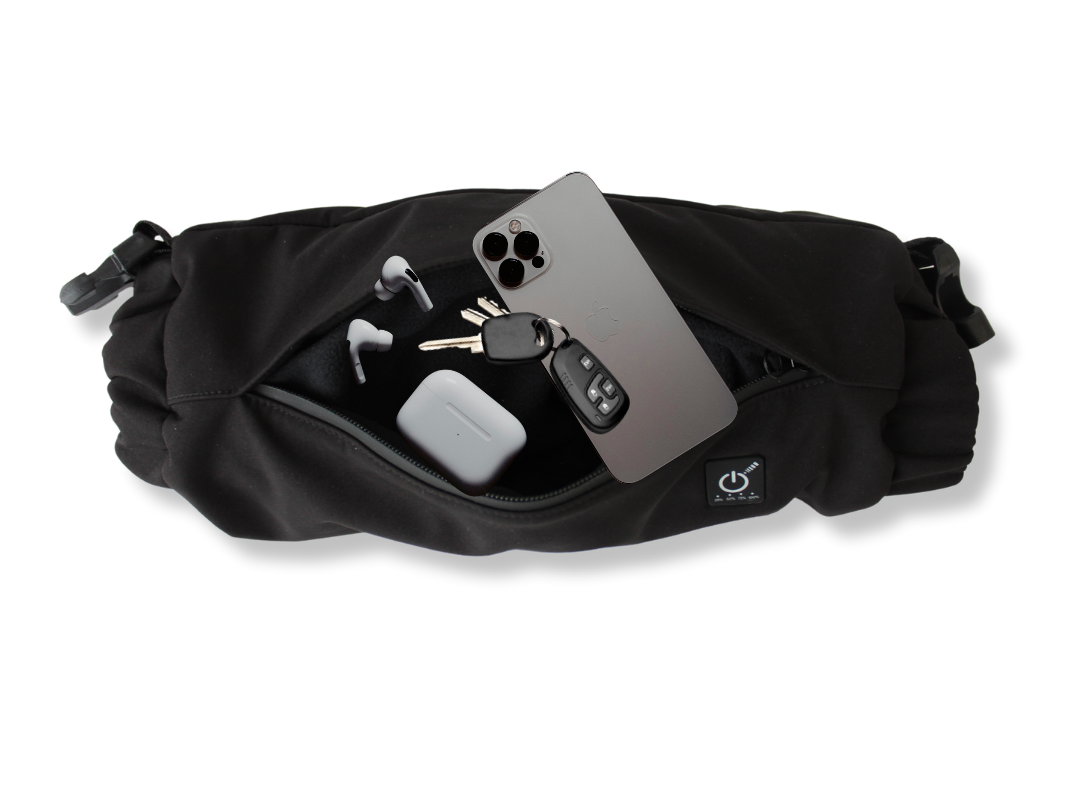 The pouch features 3 adjustable heat settings and a 4400mAh rechargeable battery, offering between *2 to 6 hours of heat depending on your settings. Constructed with a fleece-lined interior and waterproof zips, it is both cozy and durable, ready to withstand any weather condition.