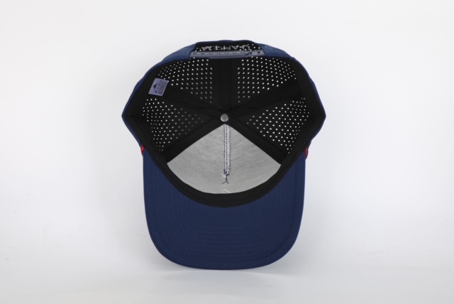 • White raised embroidered logo